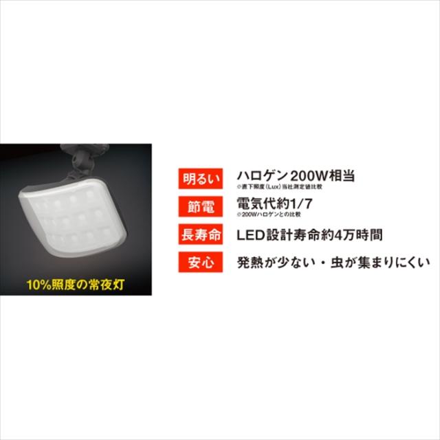 | 発熱が少ない・虫が集まりにくいから安心! 投光器になるセンサーライト。 電気代約1/7(※200Wハロゲンとの比較)。 LED設計寿命約4万時間と長寿命です。 |