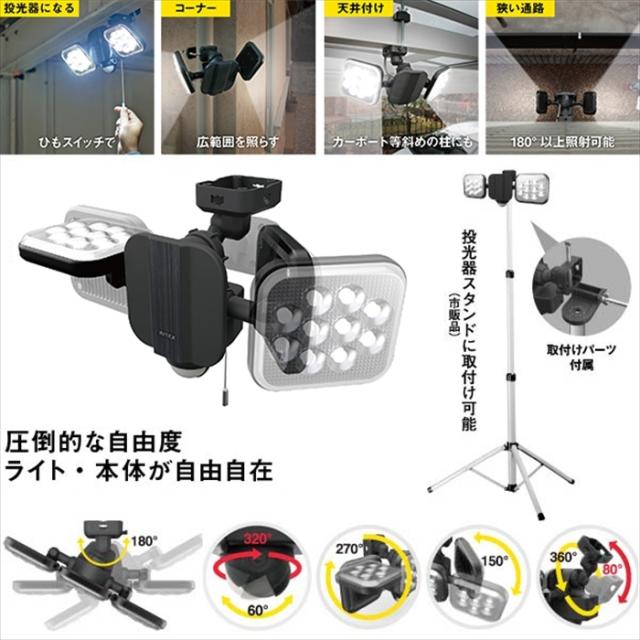 センサーライト コンセント式 LEDセンサーライト フリーアーム式 LED ライト 14W 2灯 IP44 防雨 照明 防犯