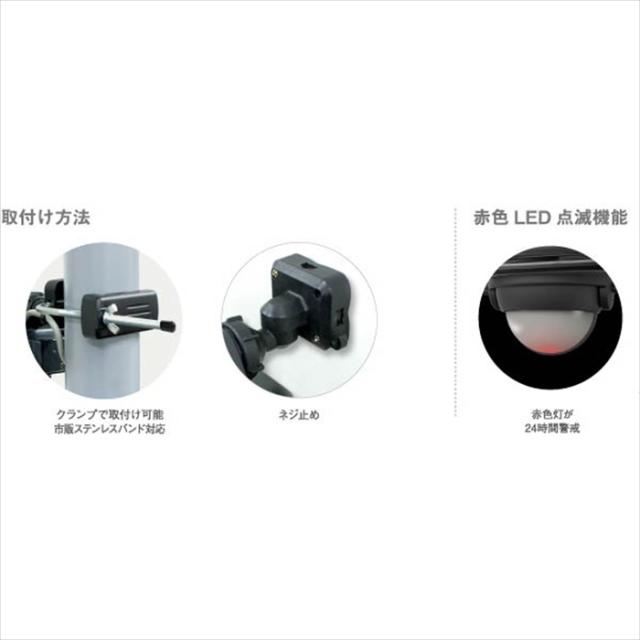 ・ 昼夜切り替え機能:あり 〈昼〉周囲が明るくても暗くても点灯/〈夜〉周囲が暗い時のみ点灯/〈常夜灯〉周囲が暗くなると常夜灯(明るさ10%)が点灯し周囲が明るくなると消灯