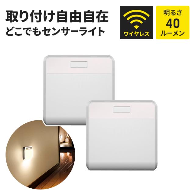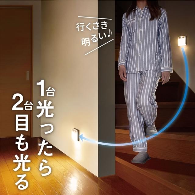 センサーライト 2個セット ワイヤレス 連動点灯 電池式 乾電池 電球色 足元灯 LED ライト 0.7W 屋内用 廊下 玄関