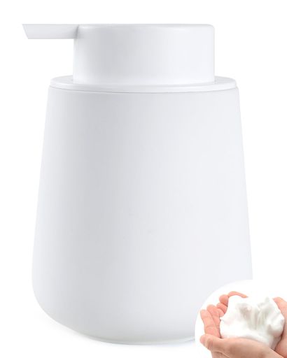 【押しタイプ ディスペンサー】大きい接続面のポンプヘッドは、ワンプッシュでふわふわの泡ができる!。ハンドソープボトル の手動操作により、必要な量を自由にコントロールでき、無駄を効果的に省きます。ソープディスペンサーのサイズは約9.2cm(幅)*12.5cmで、約320mlの大容量なので、頻繁に詰め替える必要がありません。