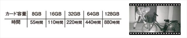 ※表は市販のマイクロSDカードで可能な録画の目安です。
