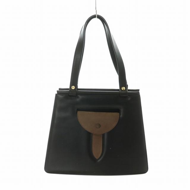 【中古】ゲラルディーニ GHERARDINI ハンドバッグ トート レザー 型押し ロゴ 黒 ブラック ■GY18 /MQ レディース