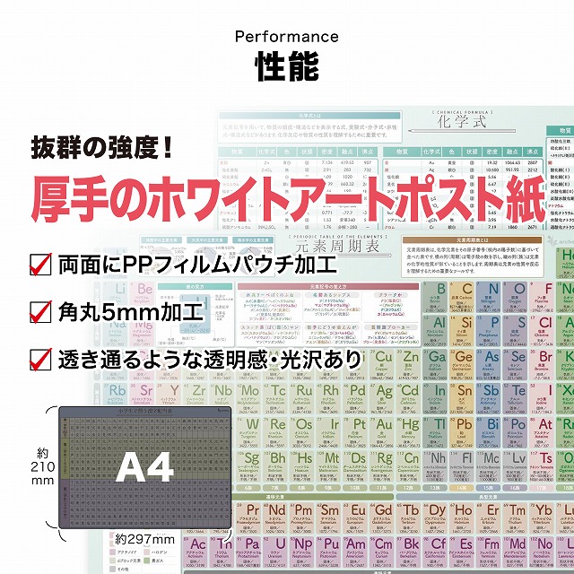 下敷き 元素周期表 化学式 A4(21×29.7cm) 角丸・両面タイプ 書きやすい 元素記号