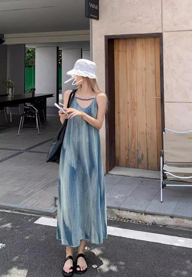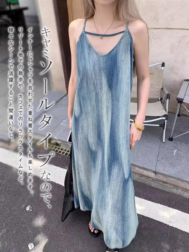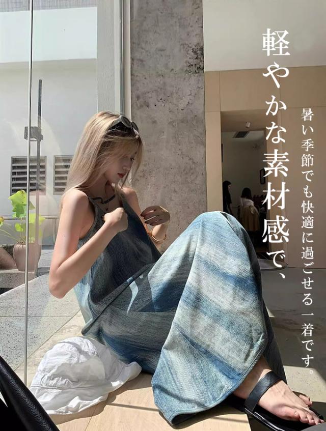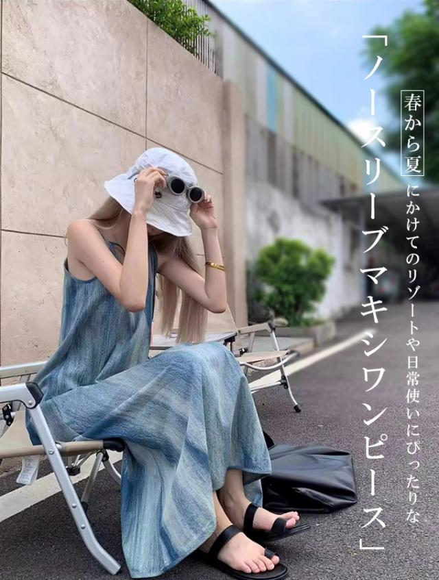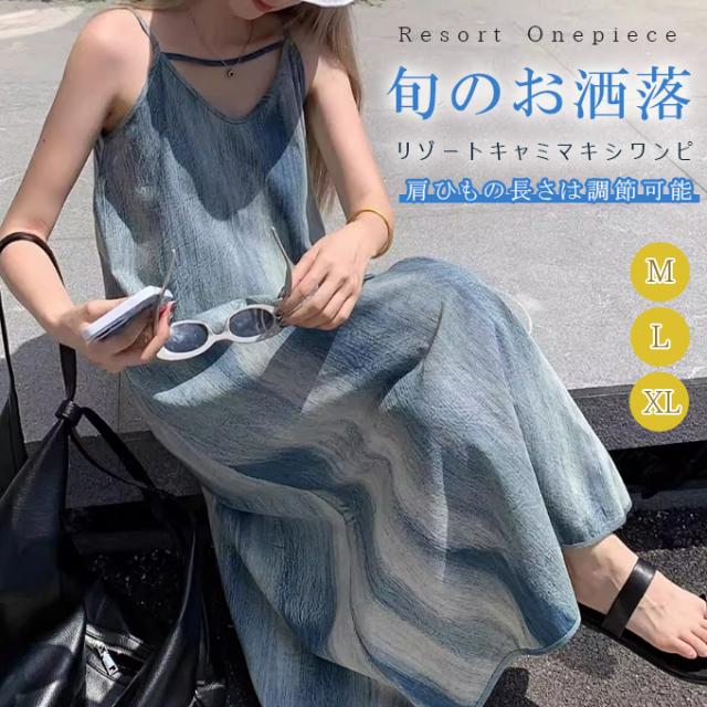 リゾート ワンピース レディース 夏 春 海 マキシワンピース ノースリーブ キャミソールワンピース Aライン ロングワンピース フレア ビーチワンピ ロング 体型カバー きれいめ カジュアル ハワイ バカンス 絞り染め