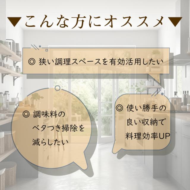 ・引き出し閉じれば調味料容器が完全保護→お手入れ簡単!