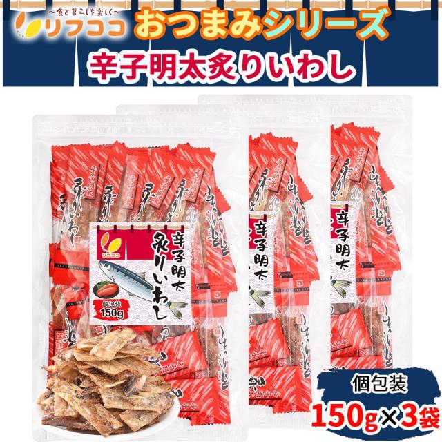 リフココ おつまみシリーズ 辛子明太 炙りいわし 個包装 150g×3袋セット ピロ業務用 おつまみ 酒のつまみ 柔らかく食べやすいスティックタイプ