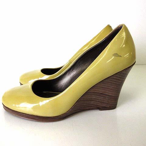 【中古】コールハーン COLE HAAN パンプス ウエッジソール 本革 エナメル レザー 6.5 B マスタードイエロー 23.5cm
