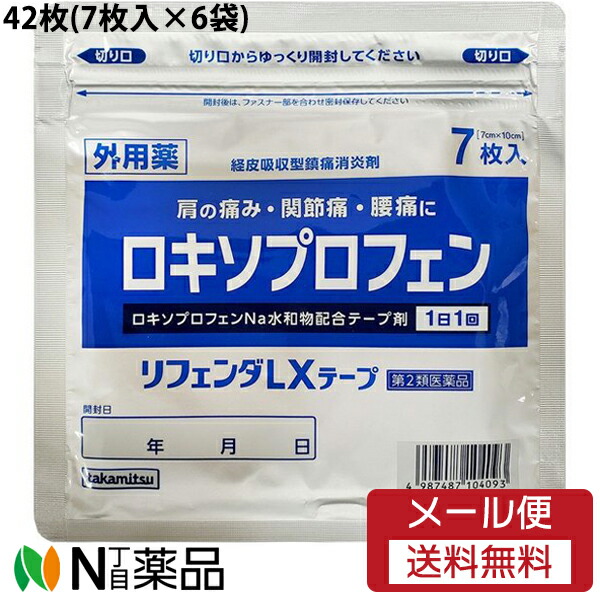 【第2類医薬品】【メール便送料無料】タカミツ ロキソプロフェン リフェンダLXテープ 42枚セット(7枚入×6袋) [7cm×10cm]<肩の痛み・関節痛・腰痛に><外用薬><ロキソプロフェンナトリウム水和物配合テープ剤>