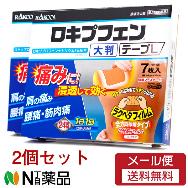 【第2類医薬品】【メール便送料無料】ラクール薬品販売 ロキプフェンテープL 大判 (7枚入) 2個セット(セルフメディケーション税制対象商品)