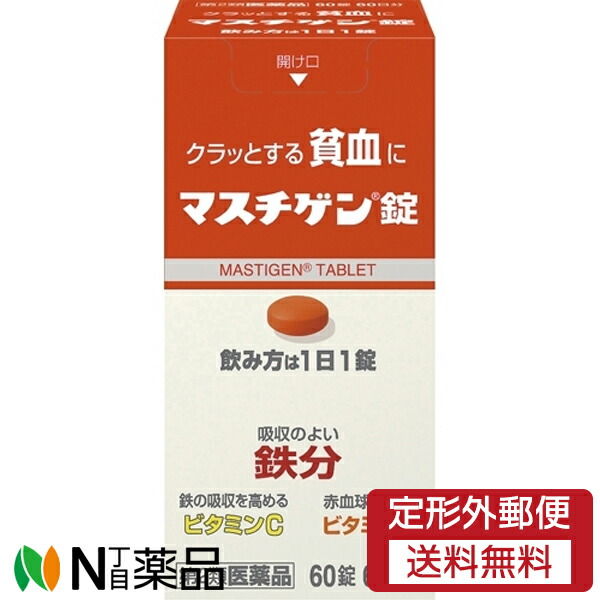 【第2類医薬品】【定形外郵便】日本臓器製薬 マスチゲン錠 (60錠) <クラッとする貧血に 鉄分 ビタミンC ビタミンE>