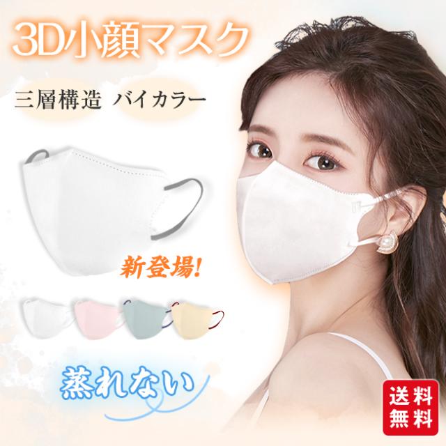 マスク 小顔3Dマスク 立体 30枚入 秋冬 息がしやすい 蒸れない 不織布マスク バイカラー おしゃれ 3層 パステルカラー くすみカラー メイクが付きにくい