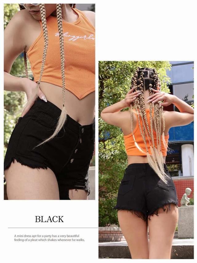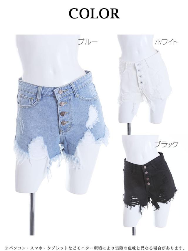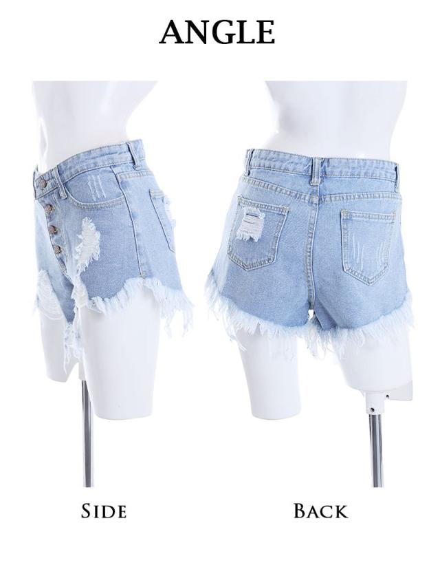 ☆お尻はしっかりカバーしながら肌見せできるヴィンテージ風ダメージデザインがSEXYにもスポーティーにも决まる♪