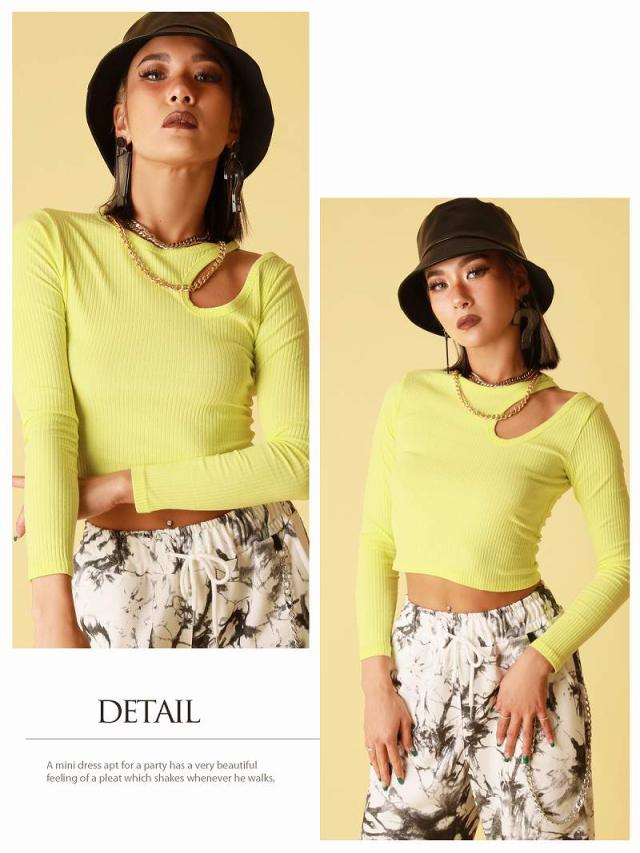 長袖カットソー Bbomb お腹見せ カットソー リブニット 長袖