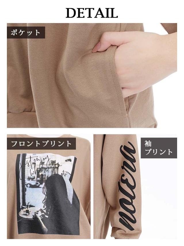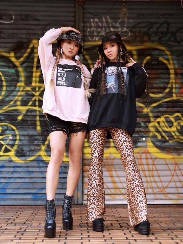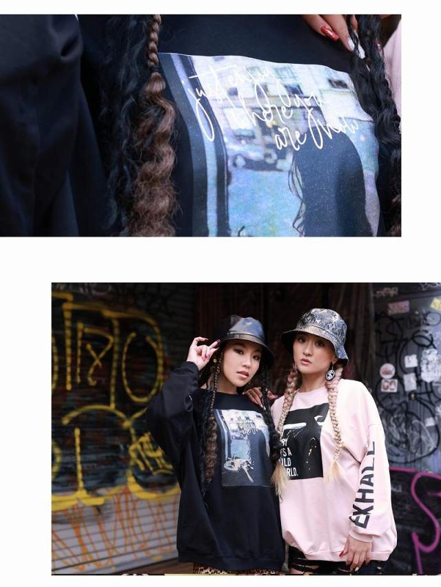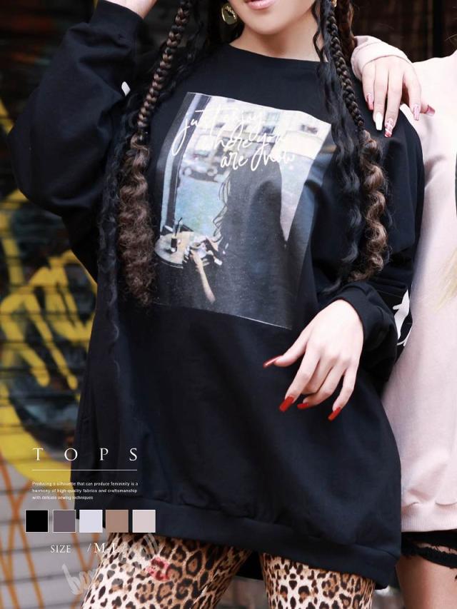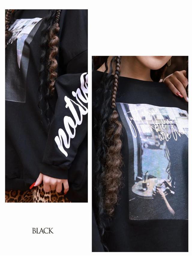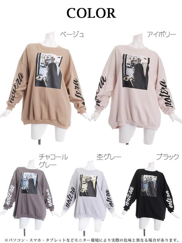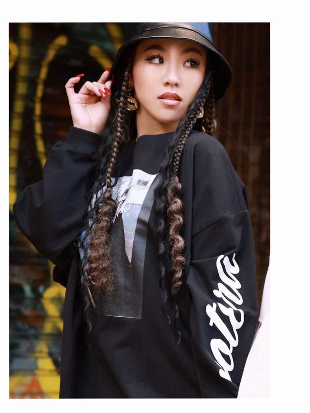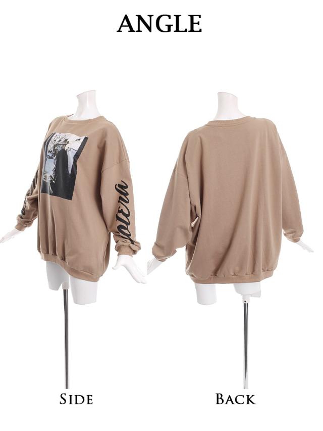 ☆トレンドのアースカラーにフォト転写でインパクト大な薄手スウェットはメンズライクなオーバーサイズで動きやすいのでダンサーさんの普段着や練習着にもぴったり。