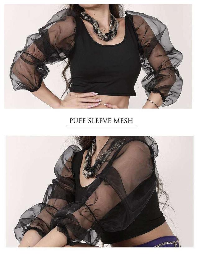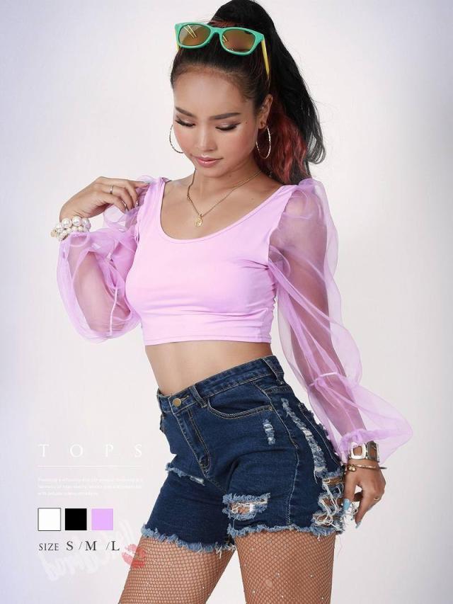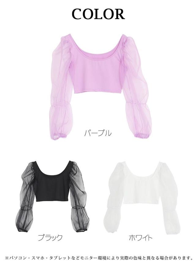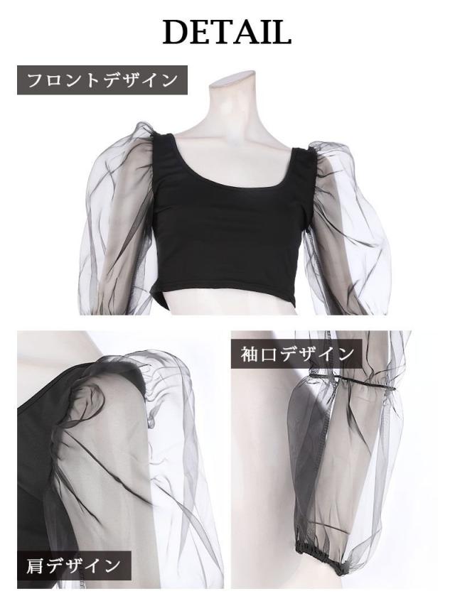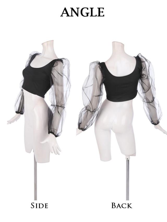 ☆ボリューミーなシースルーパフスリーブとピタッとしたシルエットがポイントのタイトトップス。