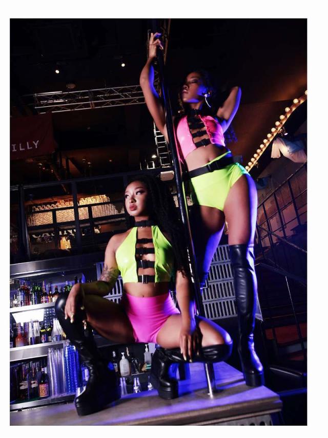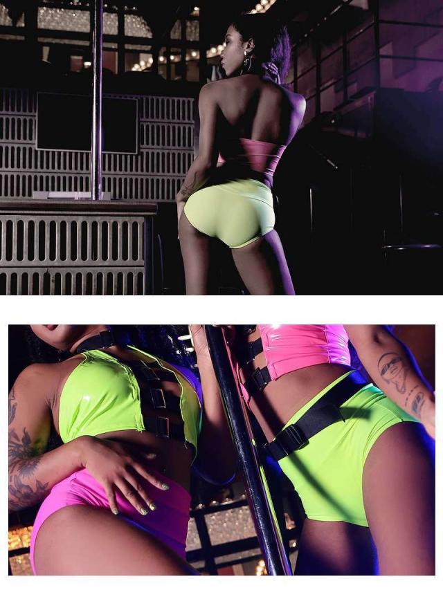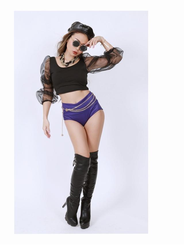 ツヤ感と光沢感がステージ映え抜群のブルマタイプのショートパンツ。