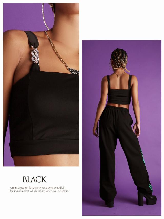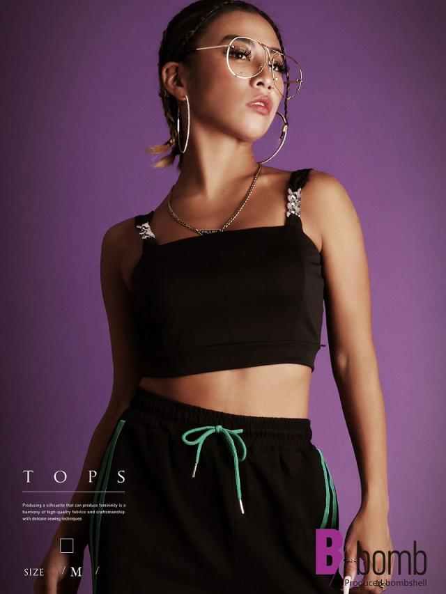 キャミソール・タンクトップ Bbomb 肩紐 チェーン ショ-ト丈 キャミソ-ル