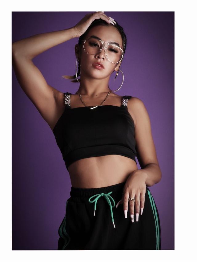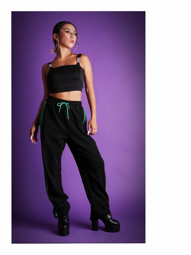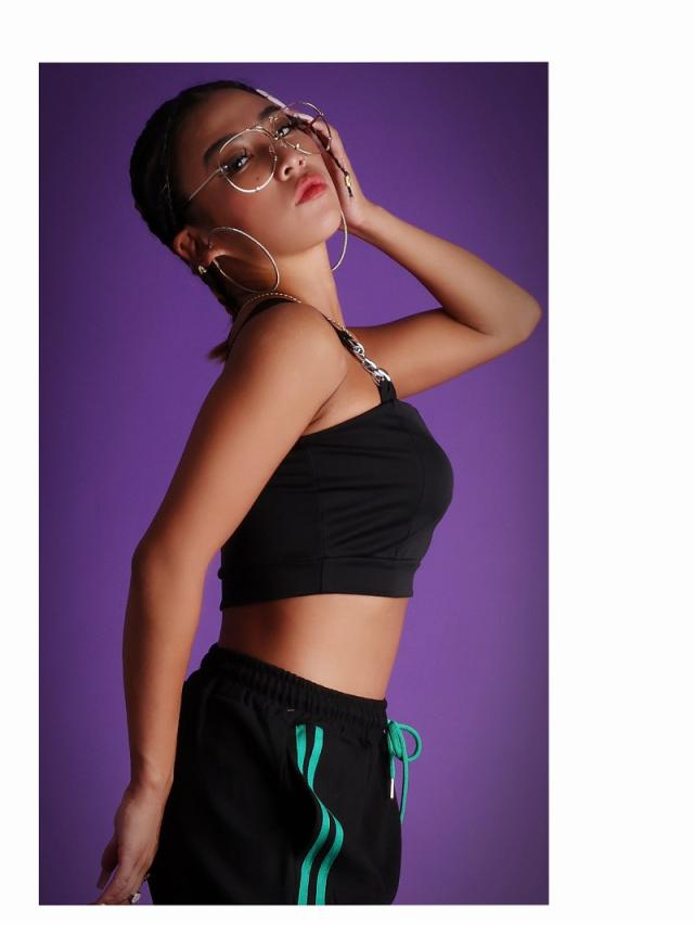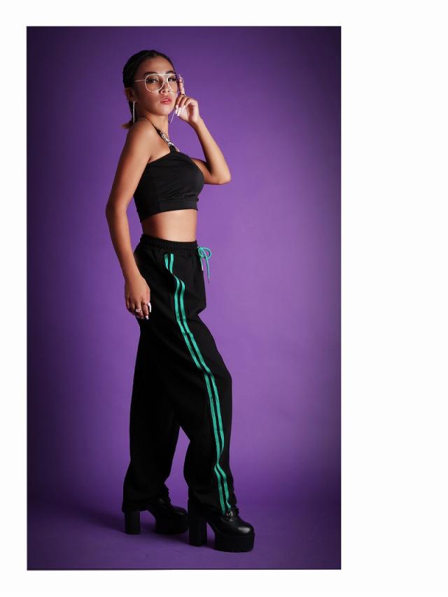 ☆ショート丈のキャミソールはスウェットパンツやボリュームボトムスとの相性◎なのでヒップホップスタイルにぴったり!