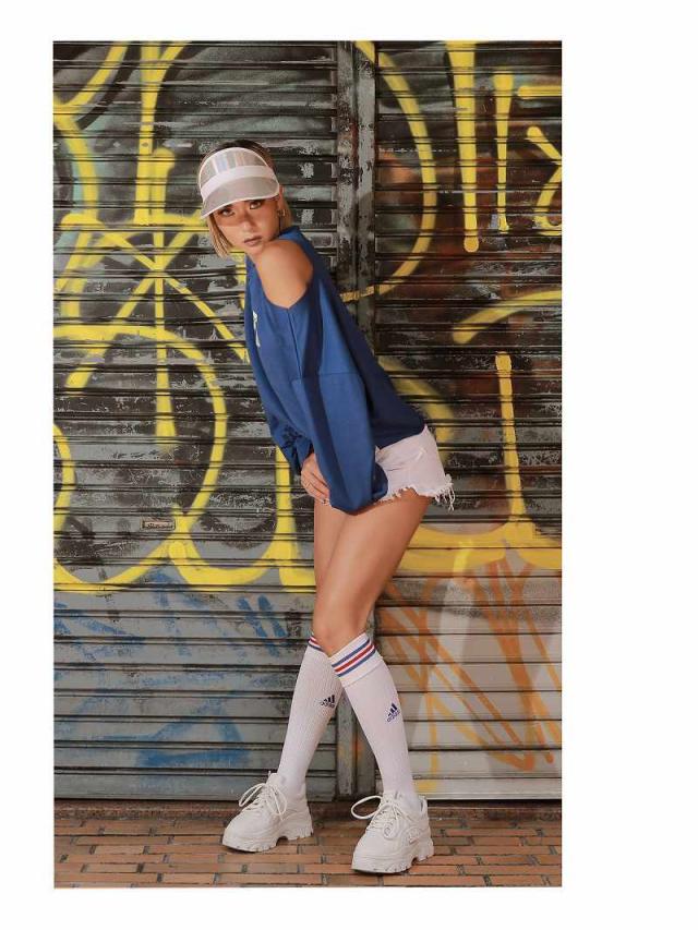 ☆ボリューム袖でダボッとゆるく着るのがかわいいトレーナーはショート丈ボトムスやブルマと合わせてHIPOPスタイルに。