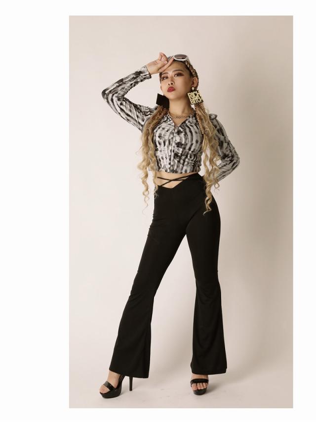 ☆伸縮性もあって着心地も良く、ダンサーの普段着やストリートスタイルにもバッチリな長袖モノトーントップス