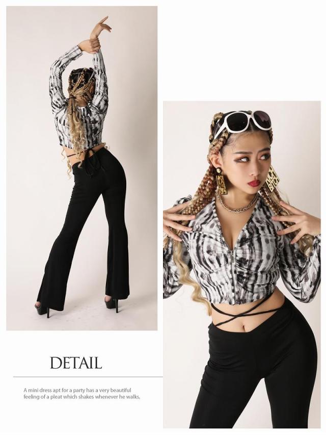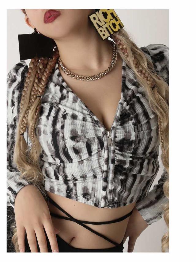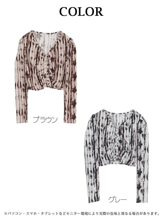 ☆個性的なタイダイ柄デザインに視線が集まる長袖リブカットソーはお腹見せショート丈トップス!