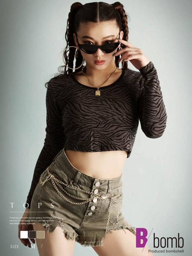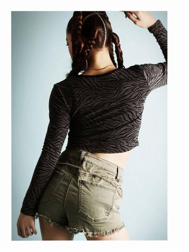 ☆お腹見せショート丈トップスはガールクラッシュな辛口コーデが即完成するゼブラ柄カットソー