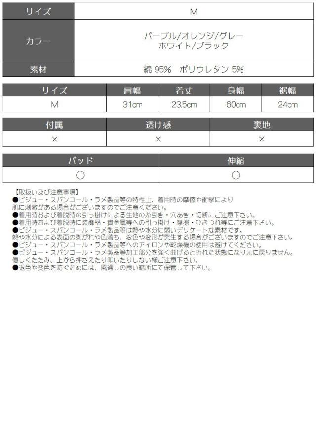 ☆どんなジャンルにも合わせやすいブラックやホワイトから、差し色としてパープルやオレンジも揃うカラバリ豊富なビスチェ!