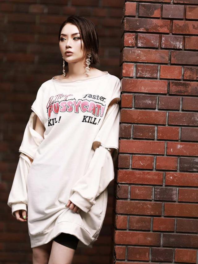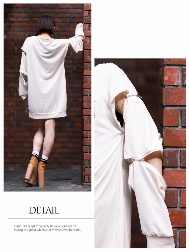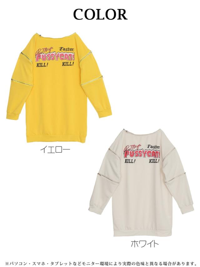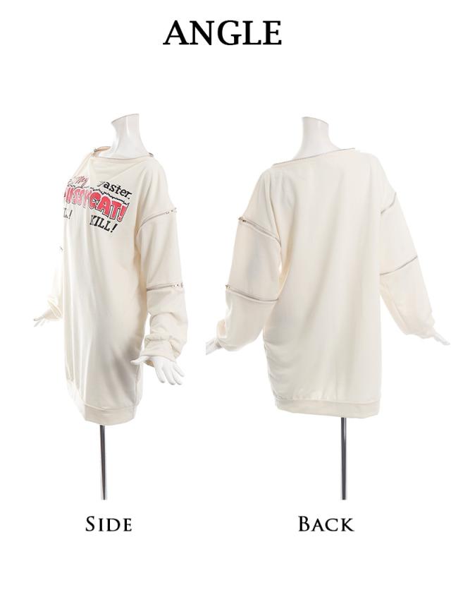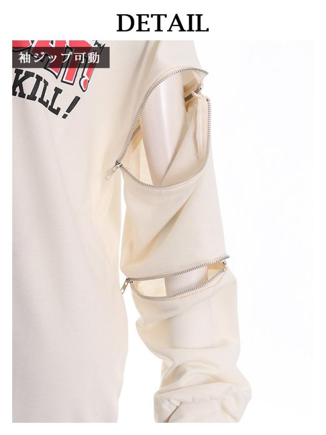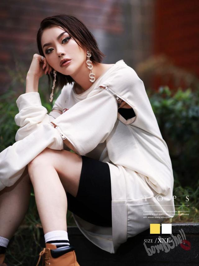 ☆袖部分がジップデザインのビッグトレーナーは、長袖・五分袖・半袖・アシンメトリーに自由自在にアレンジできるカジュアルトップス。