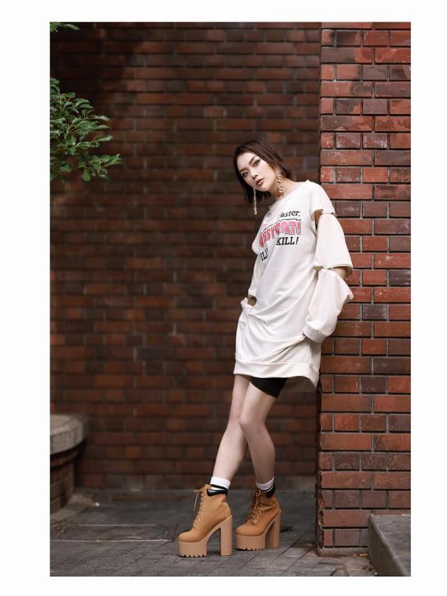 ☆ド派手なロゴがインパクトを与えてくれるロングトレーナーは、レギンスやタイトなボトムスとも相性抜群なトレーナー。