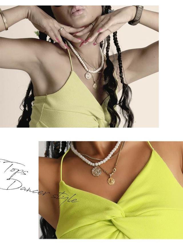 ☆大胆に背中見せできるショート丈ホルターネックキャミソール。