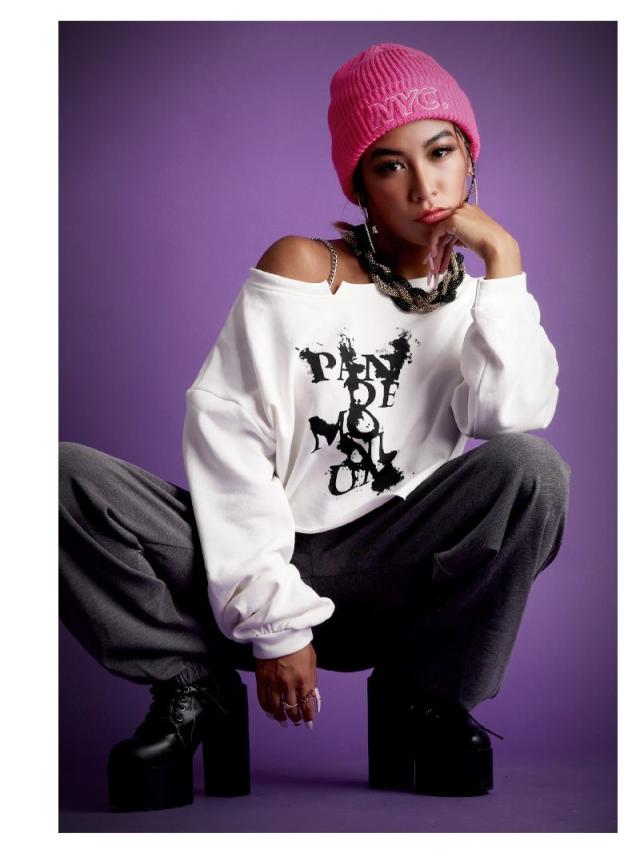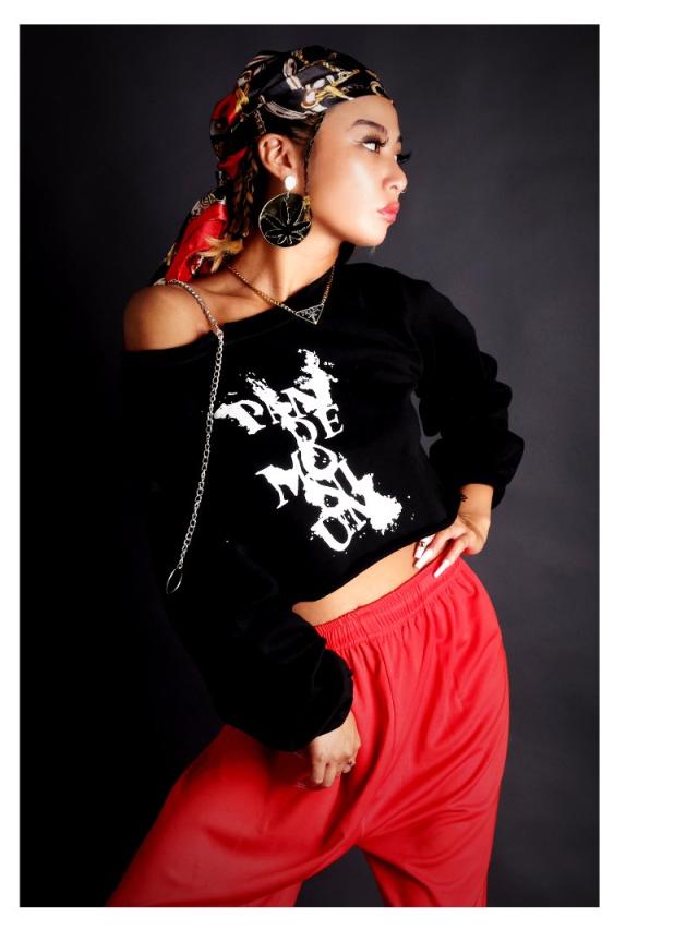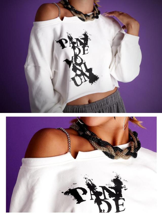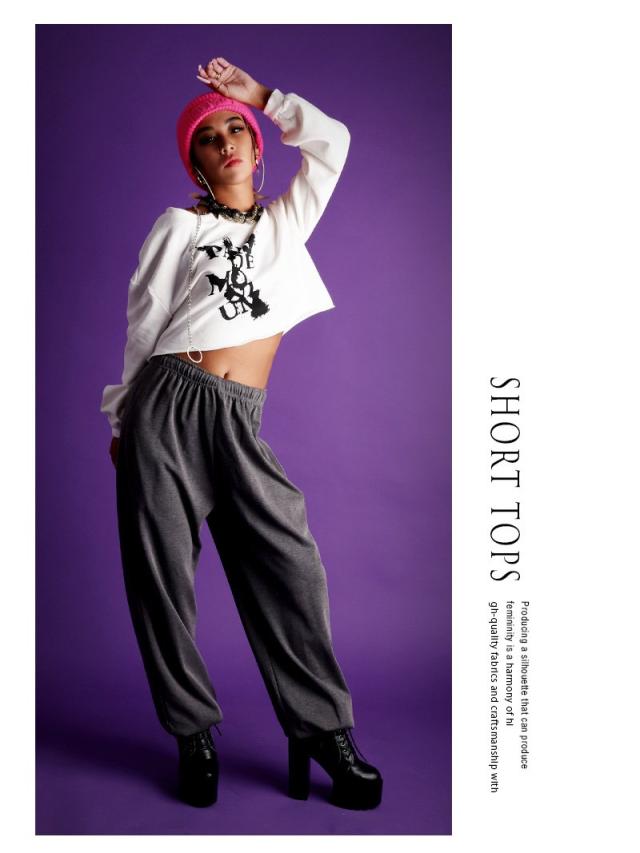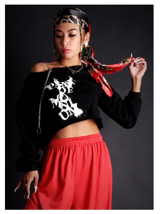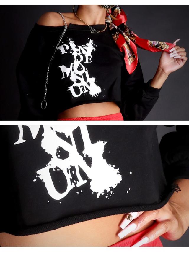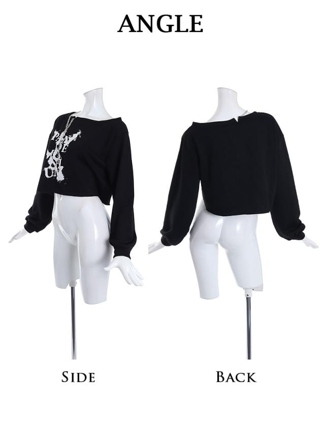 ☆シルバーアクセサリーがロックな短丈トレーナーはおしゃれダンサーさんはもちろん、ストリート系コーデやKPOPファッション、海外ファッションに最適◎
