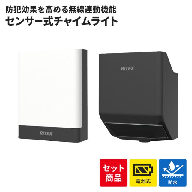 【値下げ】チャイム&ライト センサー セット 無線連動シリーズ 電池式 乾電池 チャイム音 アラーム音 IP65 防雨 屋外 防犯 玄関 庭