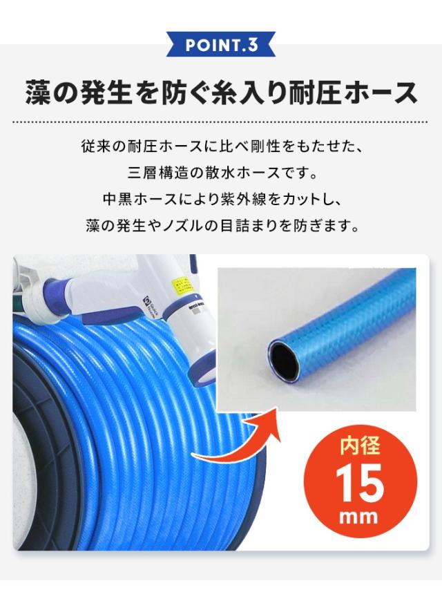 キーワード: ホース ホースリール 50m 散水ホース 大容量 シャワーホース 散水用品 多機能 ワンタッチで通水・止水 水やり 家庭菜園 便利 散水ホースリール 蛇口ジョイント付き ガーデン用品 散水 洗車 園芸 家庭菜園 掃除 おすすめ 省スペース ねじれ防止 しっかりボディー 持ち手付き ガーデン 屋外