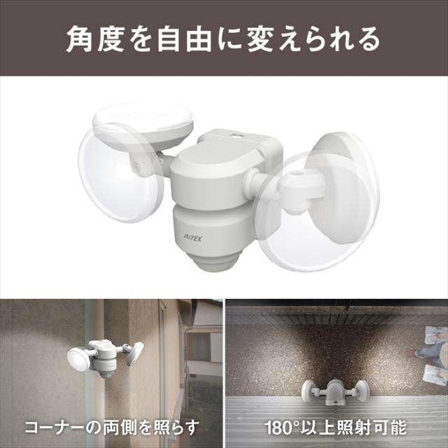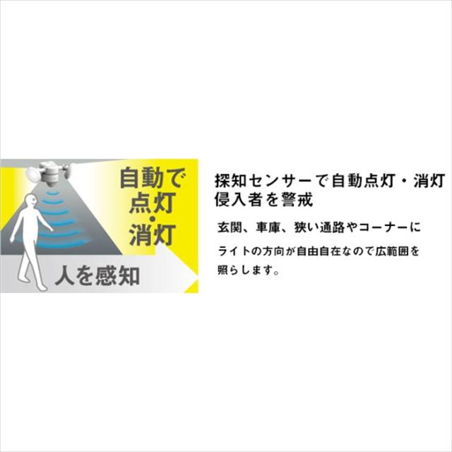 | 明るさ鮮烈!のエコノミー機。 発熱が少ない・虫が集まりにくいから安心。 電気代約1/7(※80Wハロゲンと比較)。 LED設計寿命約4万時間と長寿命です。 探知センサーで自動点灯・消灯、侵入者を警戒。 玄関、車庫、狭い通路やコーナーに。 ライトの方向が自由自在なので広範囲を照らせます。 |