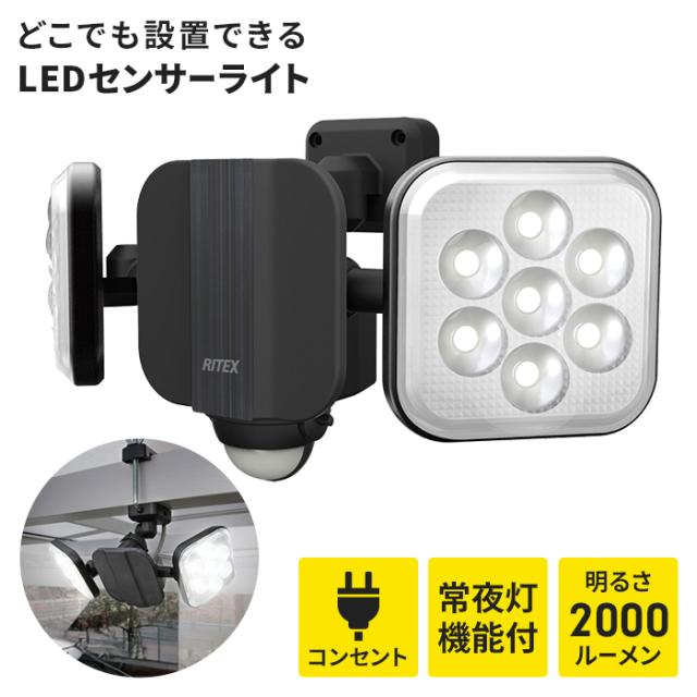 【値下げ】センサーライト コンセント式 LEDセンサーライト LEDライト LED 5W 2灯 IP44 防雨 照明 防犯