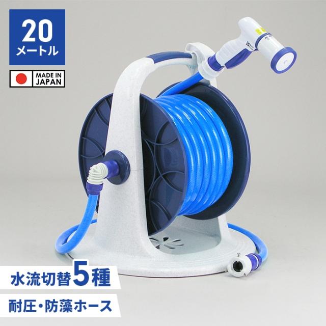 【値下げ】ホース ホースリール 20m 散水ホース シャワーホース 散水用品 円形ステップ台 ワンタッチで通水・止水 水やり 家庭菜園 便利