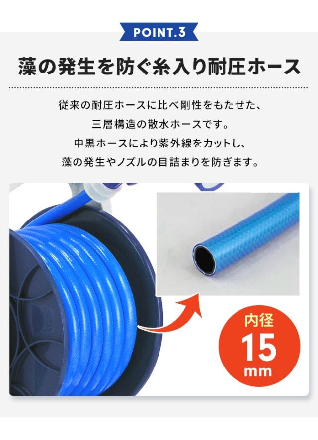 曲線フォルムと機能性を装備した20mホースリール。