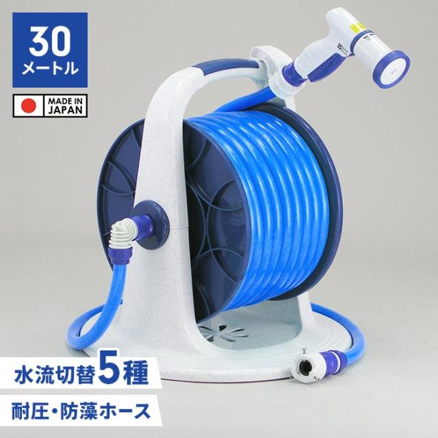 【値下げ】ホース ホースリール 30m 散水ホース シャワーホース 散水用品 円形ステップ台 ワンタッチで通水・止水 水やり 家庭菜園 便利