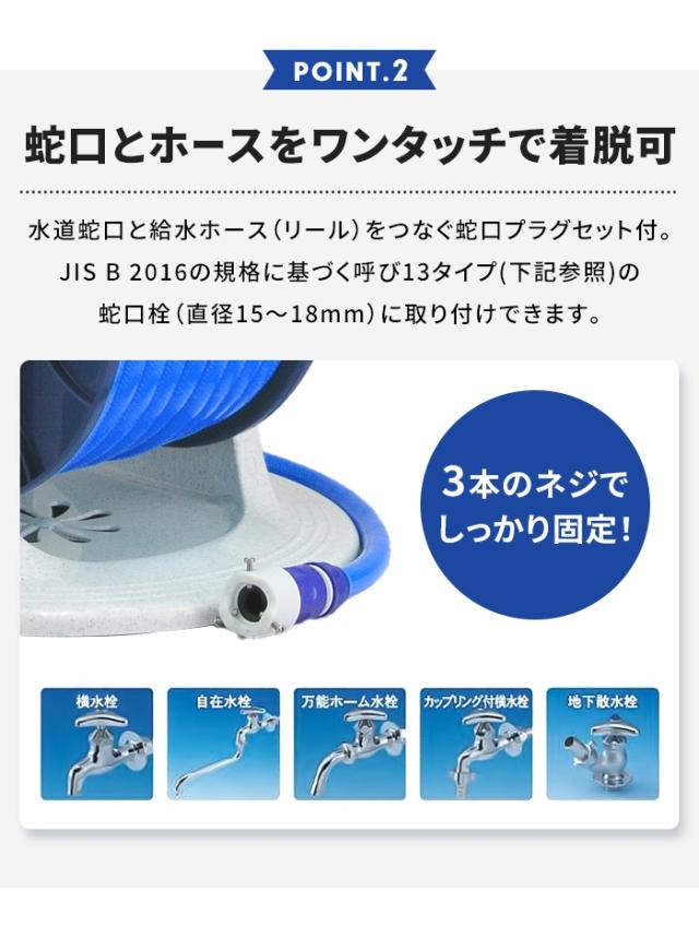 ホースのねじれ・折れ癖を防ぎます。ワンタッチで脱着できるので、移動・収納に便利。
