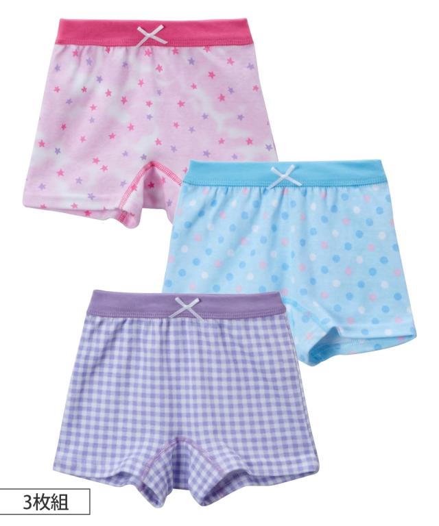 [keyword] 子供服 子供用品 女の子 女 女児 キッズ 小学生 中学生 高校生 お買い得セット まとめ買い セット お得 [comment] 足さばきのよい1分丈ショーツ伸縮性のある素材で動きにフィットします。大人っぽいモノトーンと可愛いカラフル柄をご用意しました。洗い替えに便利な3枚組でお届けします。
