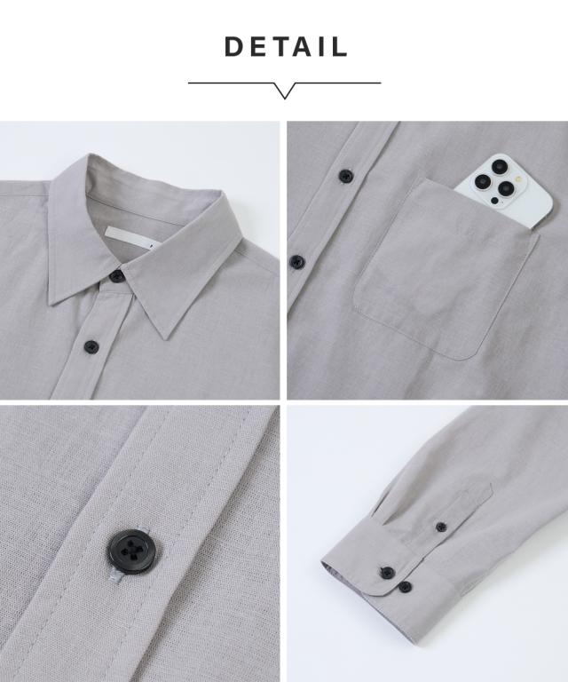 品質:綿75%・麻25% 透け感:ややあり(淡色) 伸縮性:なし 生地の厚み:普通 光沢感:なし ポケット:あり(左胸) 季節:夏向き シルエット:普通 原産国:中国製 備考:手洗い ※商品サイズは、仕上がりサイズです。
