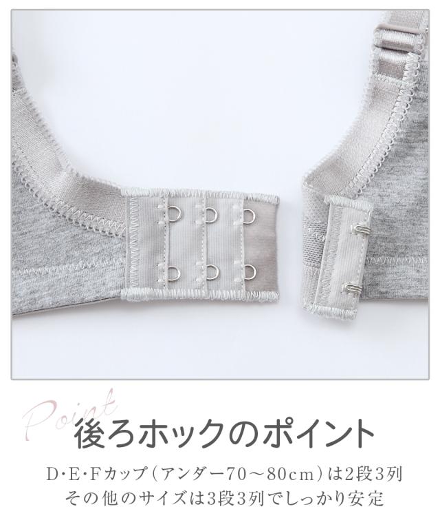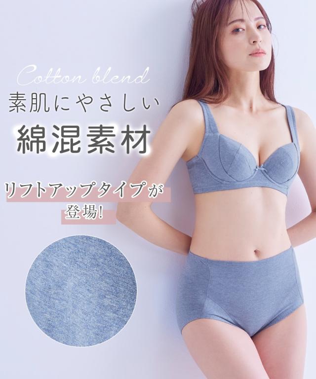 素肌にやさしい綿混リフトアップブラジャー こだわりポイント ・脇肉すっきりリフトアップタイプ ・優しい共布の幅広ストラップ ・汗ばむ素肌にうれしい綿混素材で快適 ・ボーンなしで優しい ・脇高設計で肌へのくいこみなくハミ肉を防止 ・バック部分はパワーネット裏打ちでしっかりサポート ・生地はよく伸びるストレッチ素材で身体にフィットしやすくアンダー位置安定