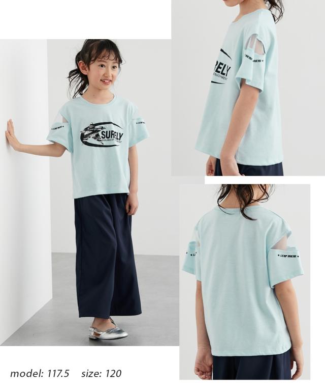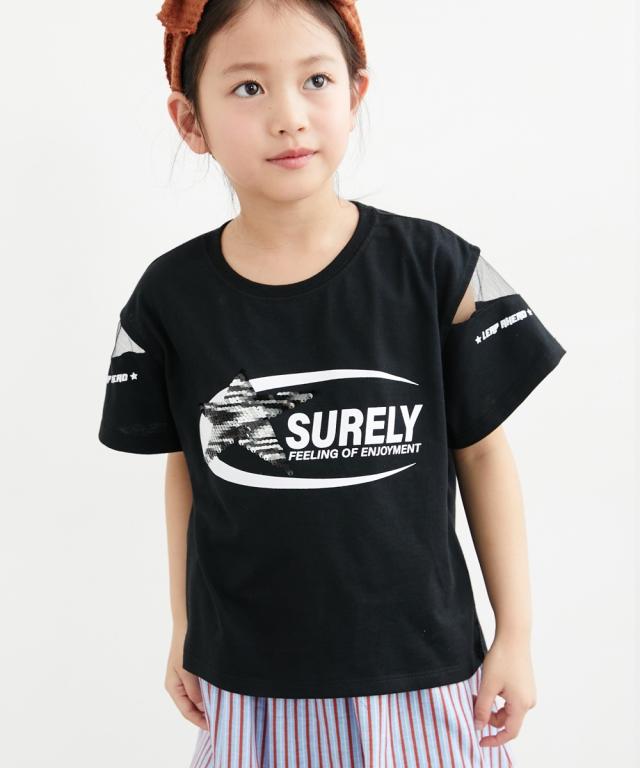Tシャツ 子供服 キッズ スタースパンコール袖チュールTシャツ 女の子 夏 トップス カットソー | 身長110/120/130cm | ニッセン nissen
