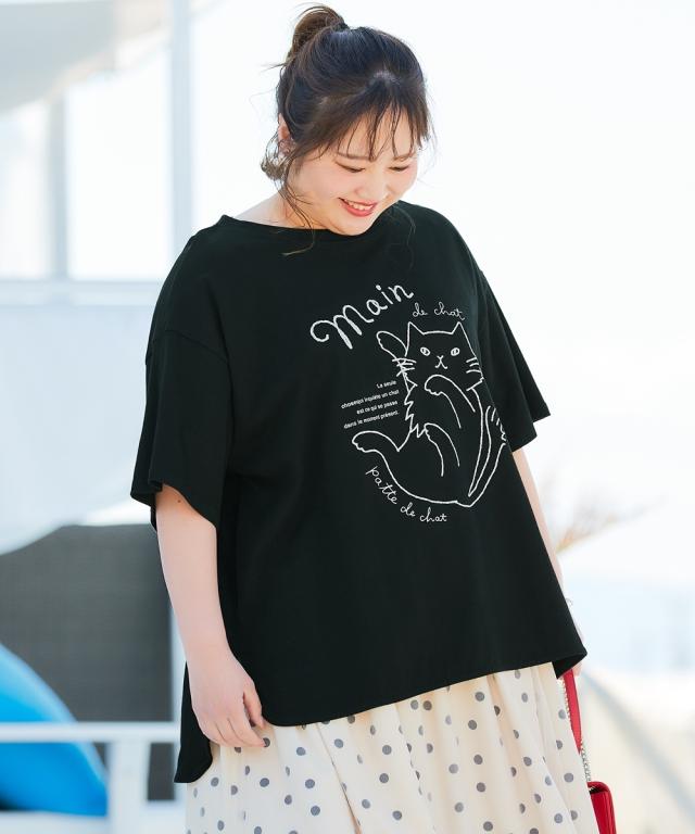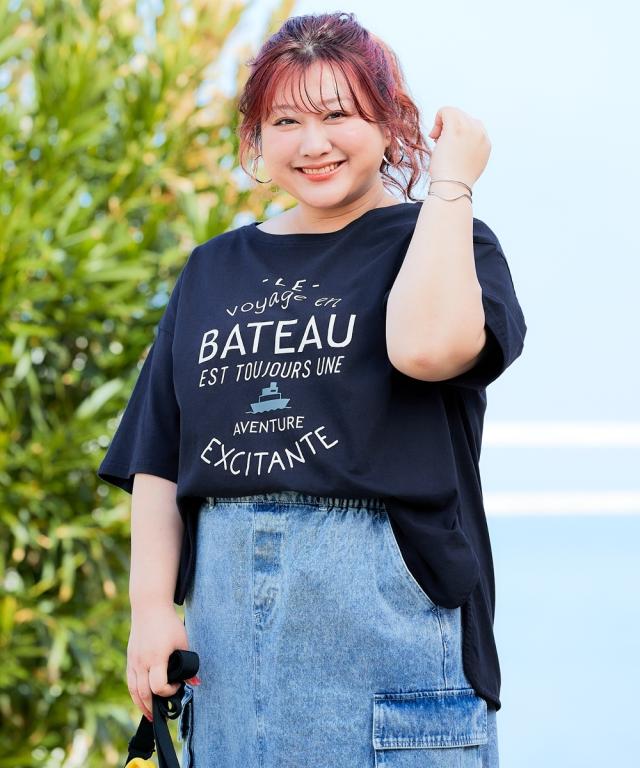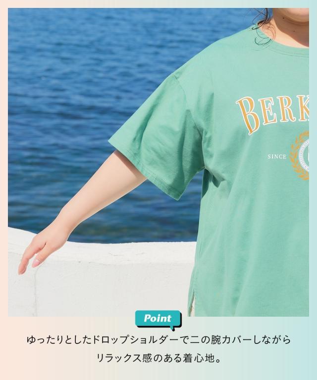 Tシャツ カットソー 大きいサイズ レディース 5分袖ビッグシルエット プリント チュニック 吸汗速乾 薄手素材 夏 | 5L〜6L | ニッセン nissen