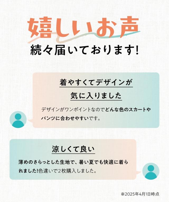品質:ポリエステル65%・綿35%(カットソー) 淡色は透けますので、キャミソール等のインナーご着用をおすすめいたします 生地の厚み:薄い 季節:春・夏 原産国:中国製 備考:洗濯機OK ネット使用