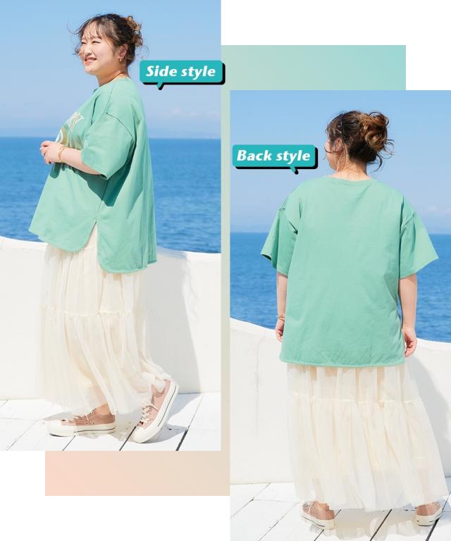 もう、着るものに悩まない!朝、パッと着るだけでサマになる、楽ちん可愛いビッグシルエットTシャツ。気になる汗も吸ってすぐ乾く!等身大の自分で、素敵になれる魔法の一枚。 ■デザイン ゆったりシルエットで体型カバーも叶う、優秀チュニックTシャツ。気になるお腹周りやヒップラインをふんわり隠して、華奢見え効果も期待できます。豊富なデザインバリエーションで、カジュアル、アメカジ、カレッジ風など、様々なスタイルを楽しめます。定番のロゴデザインから、トレンドのフォトプリントまで、お気に入りの一枚を見つけてください。サイドスリットと前後差デザインがこなれ感をプラス。 ■素材 ポリエステルと綿の混紡素材で、肌触りも快適。吸汗速乾機能付きで、汗をかいてもサラッと快適な着心地が続きます。薄手素材なので、これからの季節にぴったり。お洗濯も簡単で、お手入れ楽ちんなのが嬉しいポイントです。 ■おすすめのスタイリング カジュアルに着こなすなら、デニムやチノパンと合わせて。スニーカーやサンダルを合わせれば、アクティブな印象に。スカートと合わせれば、大人可愛いスタイリングに。プリーツスカートやフレアスカートと合わせれば、フェミニンな印象に。アクセサ