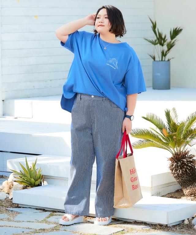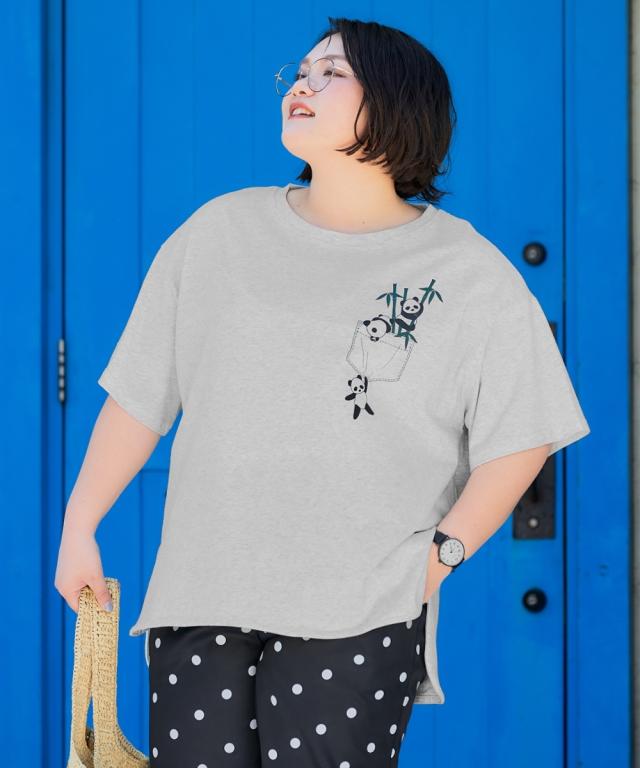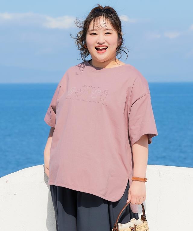 Tシャツ カットソー 大きいサイズ レディース 5分袖ビッグシルエット プリント チュニック 吸汗速乾 薄手素材 夏 | 8L/10L | ニッセン nissen