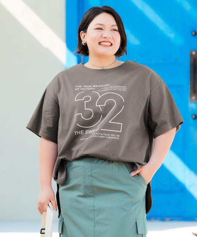 大きいサイズ 5分袖ビッグシルエットプリントチュニックTシャツ(吸汗速乾)(薄手素材)