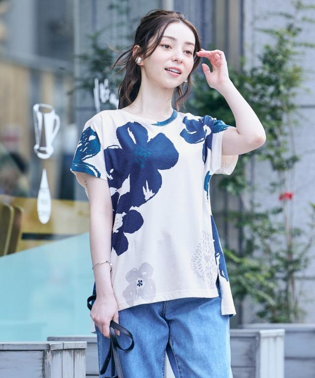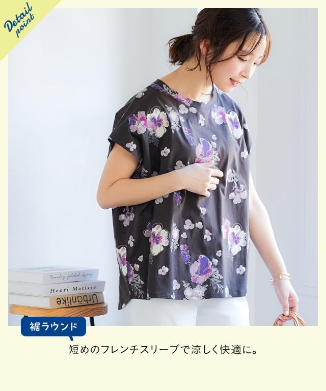 ぱっと着るだけでサマになる、楽ちん可愛いTシャツ。綿100%なのにひんやり、日焼け対策もOK!暑さに負けない夏のTシャツです。等身大のあなたがもっと素敵になる魔法の一枚、見つけませんか ■デザイン 一枚で着映えする存在感のあるデザインTシャツ。気になる体型をふんわりカバーしてくれる、優秀アイテムです。フレンチスリーブが二の腕をさりげなくカバーし、ゆったりとしたシルエットが体のラインを拾わず、リラックスした着心地。 豊富なデザインバリエーション×柄から、あなたらしい一枚を見つけてください。カジュアルな柄から、大人っぽい柄まで、様々なシーンで活躍すること間違いなし。 ■素材 綿100%の優しい肌触りで、汗ばむ季節も快適に過ごせます。接触冷感機能付きで、着るたびにひんやりとした清涼感。さらに、UVカット機能もプラスされているので、日焼け対策もバッチリ。お洗濯も簡単で、毎日着たくなる心地よさです。 ■おすすめのスタイリング デニムと合わせてカジュアルに、フレアスカートと合わせてフェミニンに。ぱっと目を引くプリントTシャツだから、シンプルなボトムスと合わせるだけで、コーディネートが完成します。アクセサリーや小物でアクセントを加えれば、さ